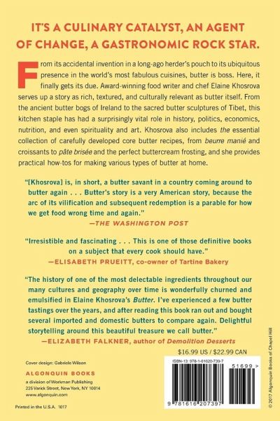 “Edifying from every point of view--historical, cultural, and culinary.” —David Tanis, author of A Platter of Figs and Other Recipes It’s a culinary catalyst, an agent of change, a gastronomic rock star. Ubiquitous in the world’s most fabulous cuisines, butter is boss. Here, it finally gets its due. After traveling across three continents to stalk the modern story of butter, award-winning food writer and former pastry chef Elaine Khosrova serves up a story as rich, textured, and culturally relevant as butter itself. From its humble agrarian origins to its present-day artisanal glory, butter has a fascinating story to tell, and Khosrova is the perfect person to tell it. With tales about the ancient butter bogs of Ireland, the pleasure dairies of France, and the sacred butter sculptures of Tibet, Khosrova details butter’s role in history, politics, economics, nutrition, and even spirituality and art. Readers will also find the essential collection of core butter recipes, including beurre manié, croissants, pâte brisée, and the only buttercream frosting anyone will ever need, as well as practical how-tos for making various types of butter at home--or shopping for the best. “A fascinating, tasty read . . . And what a bonus to have a collection of essential classic butter recipes included.” —David Tanis, author of A Platter of Figs and Other Recipes “Following the path blazed by Margaret Visser in Much Depends on Dinner, Elaine Khosrova makes much of butter and the ruminants whose milk man churns. You will revel in dairy physics. And you may never eat margarine again.” —John T. Edge, author of The Potlikker Papers: A Food History of the Modern South “Butter proves that close study can reveal rich history, lore, and practical information. All that and charm too.” —Mimi Sheraton, author of 1,000 Foods to Eat Before You Die “Irresistible and fascinating . . . This is one of those definitive books on a subject that every cook should have.” —Elisabeth Prueitt, co-owner of Tartine Bakery “The history of one of the most delectable ingredients throughout our many cultures and geography over time is wonderfully churned and emulsified in Khosrova’s Butter . . . Delightful storytelling.” —Elizabeth Falkner, author of Demolition Desserts: Recipes from Citizen Cake