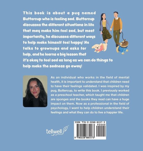 As an individual who works in the field of mental health, it is important to understand that children need to have their feelings validated. I was inspired by my pug, Buttercup, to write this book. I previously worked as a preschool teacher, which taught me that children are sponges and the books they read can have a huge impact on them. Now as a professional in the field of psychology, I want to help children understand their feelings and what they can do to live a happier life.