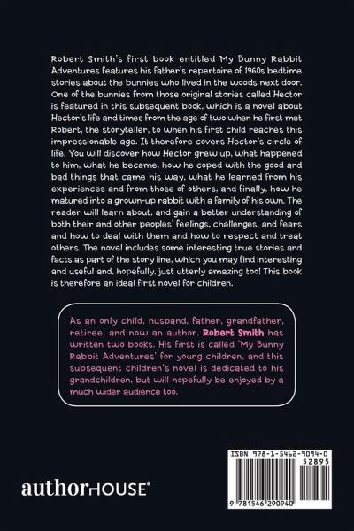 Robert Smith's first book entitled My Bunny Rabbit Adventures features his father's repertoire of 1960s bedtime stories about the bunnies who lived in the woods next door. One of the bunnies from those original stories called Hector is featured in this subsequent book, which is a novel about Hector's life and times from the age of two when he first met Robert, the storyteller, to when his first child reaches this impressionable age. It therefore covers Hector's circle of life. You will discover how Hector grew up, what happened to him, what he became, how he coped with the good and bad things that came his way, what he learned from his experiences and from those of others, and finally, how he matured into a grown-up rabbit with a family of his own. The reader will learn about, and gain a better understanding of both their and other peoples' feelings, challenges, and fears and how to deal with them and how to respect and treat others. The novel includes some interesting true stories and facts as part of the story line, which you may find interesting and useful and, hopefully, just utterly amazing too! This book is therefore an ideal first novel for children.