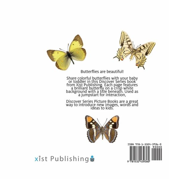 Bilingual Discover Series Books for Babies & Toddlers Butterflies are beautiful! Share colorful butterflies with your baby or toddler in this Discover Series book from Xist Publishing. Each page features a brilliant butterfly on a crisp white background with a title beneath. Used as a jumpstart for interaction and for early language learning, Bilingual Discover Series Picture Books are a great way to introduce new images, words and ideas to kids. Descubra libros de la serie para bebés y niños pequeños ¡Las mariposas son hermosas! Comparta mariposas coloridas con su bebé o niño en este libro de Discover Series de Xist Publishing. Cada página ofrece una mariposa brillante en un fondo blanco quebradizo con un título debajo. Utilizado como un salto para la interacción, Discover Series Picture Books son una gran manera de introducir nuevas imágenes, palabras e ideas a los niños.