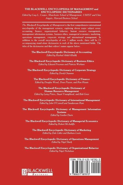 Containing 425 entries from over 180 leading authorities in the field, The Blackwell Encyclopedic Dictionary of Organizational Behavior, now available in paperback, provides clear, concise and informative definitions and explanations of key concepts and issues, with an emphasis on current and developing trends. To ensure a fully international perspective, the advisory editors, Professor Randall Schuler and Professor Andrew H. van de Ven, have made significant contributions to the preparation of this unique reference resource. Providing comprehensive and balanced coverage, this dictionary is destined to become the standard reference work for teachers, practitioners and researchers in the field.
