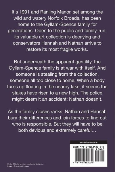 It's 1991 and Ranling Manor, set among the wild and watery Norfolk Broads, has been home to the Gyllam-Spence family for generations. Open to the public and family-run, its valuable art collection is decaying and conservators Hannah and Nathan arrive to restore its most fragile works. But underneath the apparent gentility, the Gyllam-Spence family is at war with itself. And someone is stealing from the collection, someone all too close to home. When a body turns up floating in the nearby lake, it seems the stakes have risen to a new high. The police might deem it an accident; Nathan doesn't. As the family closes ranks, Nathan and Hannah bury their differences and join forces to find out who is responsible. But they will have to be both devious and extremely careful...