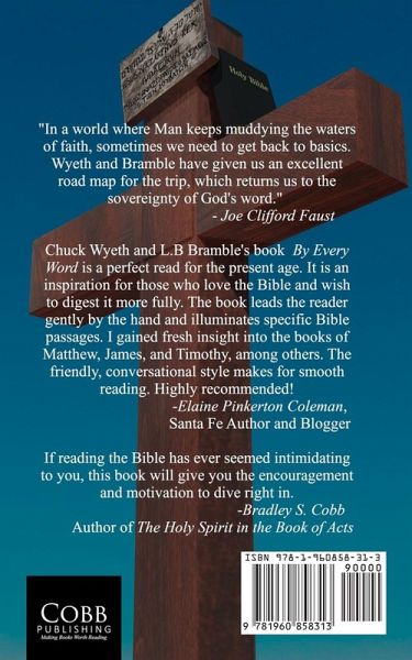"In a world where Man keeps muddying the waters of faith, sometimes we need to get back to basics. Wyeth and Bramble have given us an excellent road map for the trip, which returns us to the sovereignty of God's word." - Joe Clifford Faust Chuck Wyeth and L.B Bramble's book By Every Word is a perfect read for the present age. It is an inspiration for those who love the Bible and wish to digest it more fully. The book leads the reader gently by the hand and illuminates specific Bible passages. I gained fresh insight into the books of Matthew, James, and Timothy, among others. The friendly, conversational style makes for smooth reading. Highly recommended! -Elaine Pinkerton Coleman, Santa Fe Author and Blogger If reading the Bible has ever seemed intimidating to you, this book will give you the encouragement and motivation to dive right in. -Bradley S. Cobb Author of The Holy Spirit in the Book of Acts