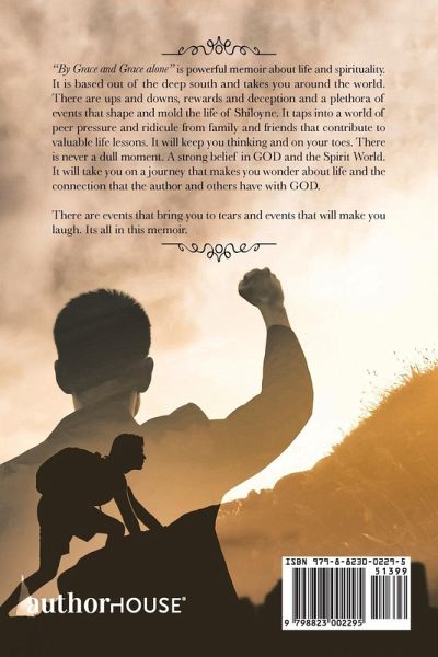 "By Grace and Grace alone" is powerful memoir about life and spirituality. It is based out of the deep south and takes you around the world. There are ups and downs, rewards and deception and a plethora of events that shape and mold the life of Shiloyne. It taps into a world of peer pressure and ridicule from family and friends that contribute to valuable life lessons. It will keep you thinking and on your toes. There is never a dull moment. A strong belief in GOD and the Spirit World. It will take you on a journey that makes you wonder about life and the connection that the author and others have with GOD. There are events that bring you to tears and events that will make you laugh. Its all in this memoir.