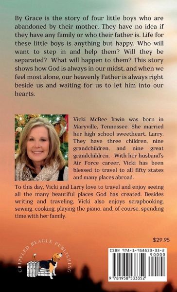 By Grace is the story of four little boys who are abandoned by their mother. They have no idea if they have any family or who their father is. Life for these little boys is anything but happy. Who will want to step in and help them? Will they be separated? What will happen to them? This story shows how God is always in our midst, and when we feel most alone, our heavenly Father is always right beside us and waiting for us to let him into our hearts.