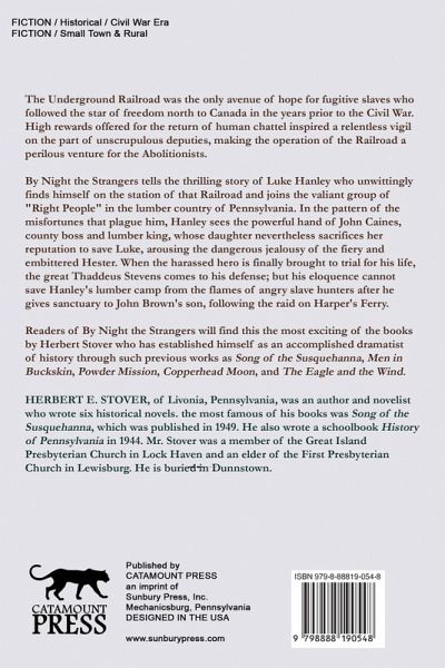 The Underground Railroad was the only avenue of hope for fugitive slaves who followed the star of freedom north to Canada in the years prior to the Civil War. High rewards offered for the return of human chattel inspired a relentless vigil on the part of unscrupulous deputies, making the operation of the Railroad a perilous venture for the Abolitionists. By Night the Strangers tells the thrilling story of Luke Hanley who unwittingly finds himself on the station of that Railroad and joins the valiant group of "Right People" in the lumber country of Pennsylvania. In the pattern of the misfortunes that plague him, Hanley sees the powerful hand of John Caines, county boss and lumber king, whose daughter nevertheless sacrifices her reputation to save Luke, arousing the dangerous jealousy of the fiery and embittered Hester. When the harassed hero is finally brought to trial for his life, the great Thaddeus Stevens comes to his defense; but his eloquence cannot save Hanley's lumber camp from the flames of angry slave hunters after he gives sanctuary to John Brown's son, following the raid on Harper's Ferry. Readers of By Night the Strangers will find this the most exciting of the books by Herbert Stover who has established himself as an accomplished dramatist of history through such previous works as Song of the Susquehanna, Men in Buckskin, Powder Mission, Copperhead Moon, and The Eagle and the Wind.