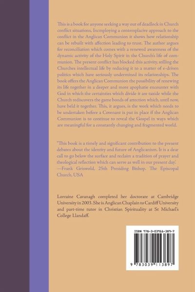 This is a book for anyone seeking a way out of deadlock in Church conflict situations. In employing a contemplative approach to the conflict in the Anglican Communion, it shows how relationships can be rebuilt with affection leading to trust. The author argues for reconciliation which comes with a renewed awareness of the dynamic activity of the Holy Spirit in the Church's life of communion. The present conflict has blocked this activity, stifling the Church's intellectual life by reducing it to a matter of issue-driven politics which have seriously undermined its relationships. The book offers the Anglican Communion the possibility of renewing its life together in a deeper and more apophatic encounter with God in which the certainties which divide it are set aside while the Church rediscovers the genuine bonds of affection which, until now, have held it together. This, it argues, is the work which needs to be undertaken before a Covenant is put in place if the Anglican Communionis to continue to reveal the Gospel in ways which are meaningful for a constantly changing and fragmented world.