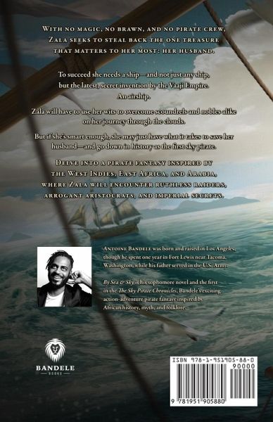 With no magic, no brawn, and no pirate crew, Zala seeks to steal back the one treasure that matters to her most: her husband.To succeed she needs a ship-and not just any ship, but the latest, secret invention by the Vaaji Empire. An airship.Zala will have to use her wits to overcome scoundrels and nobles alike on her journey through the clouds.But if she's smart enough, she may just have what it takes to save her husband-and go down in history as the first sky pirate.Delve into a pirate fantasy inspired by the West Indies, The Swahili Coast, and Arabia, where Zala will encounter ruthless raiders, arrogant aristocrats, and imperial secrets.