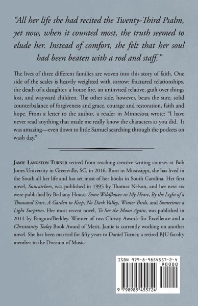 "All her life she had recited the Twenty-Third Psalm, yet now, when it counted most, the truth seemed to elude her. Instead of comfort, she felt that her soul had been beaten with a rod and staff." The lives of three different families are woven into this story of faith. One side of the scales is heavily weighted with sorrow: fractured relationships, the death of a daughter, a house fire, an uninvited relative, guilt over things lost, and wayward children. The other side, however, bears the sure, solid counterbalance of forgiveness and grace, courage and restoration, faith and hope. From a letter to the author, a reader in Minnesota wrote: "I have never read anything that made me really know the characters as you did. . . . It was amazing-even down to little Samuel searching through the pockets on wash day."