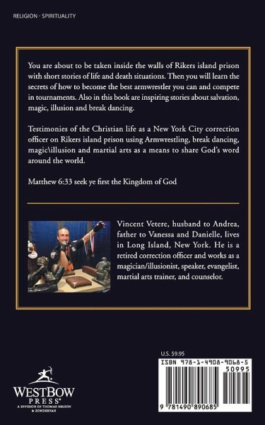 You are about to be taken inside the walls of Rikers island prison with short stories of life and death situations. Then you will learn the secrets of how to become the best armwrestler you can and compete in tournaments. Also in this book are inspiring stories about salvation, magic, illusion and break dancing. Testimonies of the christian life as a New York City correction officer on Rikers island prison ,using Armwrestling ,breakdancing ,magic\illusion and martial arts as a means to share Gods word around the n world. Matthew 6;33 seek ye first the Kingdom of God