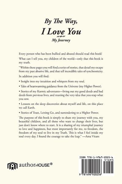 Within these pages you will find a series of stories, that detail my escape from my past abusive life, and truths that tell of incredible tales of synchronicity. In addition you will find: ¿ Insight into my intuition and whispers from my soul. ¿ Tales of heartwarming guidance from the Universe (my Higher Power). ¿ Stories of my Karmic adventures-living out my good deeds and bad deeds from previous lives, and trusting the very idea that you reap what you sow. ¿ Lessons on the deep discoveries about myself and life, on this place we call Earth. ¿ Stories of Trust, Letting Go, and surrendering to a Higher Power. This is the story of a complete transformation-the rebirth of myself as a deeply spiritual person. My book details the circumstances and events that speak of my journey to the deepest depths of my soul-a soul that has carried many patterns of behaviours, including parts of me that have been carried forward from lifetime to lifetime. In this lifetime, in this existence, I was given the opportunity to extinguish those behaviours-put them to rest, conquer and defeat them for evermore. The purpose of this book is simply to share my journey with you, my beautiful children, and all those who want to change their lives, but just don't know where to start. It is a sharing of my triumphal journey to love and happiness, but most importantly for me, to freedom, the freedom of my soul to live in my Truth. This is what I feel inside my soul every day. I found the courage to take the leap.