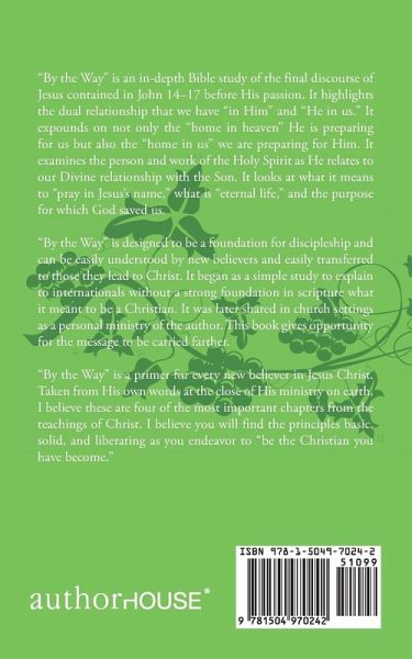 "By the Way" is an in-depth Bible study of the final discourse of Jesus contained in John 14-17 before His passion. It highlights the dual relationship that we have "in Him" and "He in us." It expounds on not only the "home in heaven" He is preparing for us but also the "home in us" we are preparing for Him. It examines the person and work of the Holy Spirit as He relates to our Divine relationship with the Son. It looks at what it means to "pray in Jesus's name," what is "eternal life," and the purpose for which God saved us. "By the Way" is designed to be a foundation for discipleship and can be easily understood by new believers and easily transferred to those they lead to Christ. It began as a simple study to explain to internationals without a strong foundation in scripture what it meant to be a Christian. It was later shared in church settings as a personal ministry of the author. This book gives opportunity for the message to be carried farther. "By the Way" is a primer for every new believer in Jesus Christ. Taken from His own words at the close of His ministry on earth, I believe these are four of the most important chapters from the teachings of Christ. I believe you will find the principles basic, solid, and liberating as you endeavor to "be the Christian you have become."