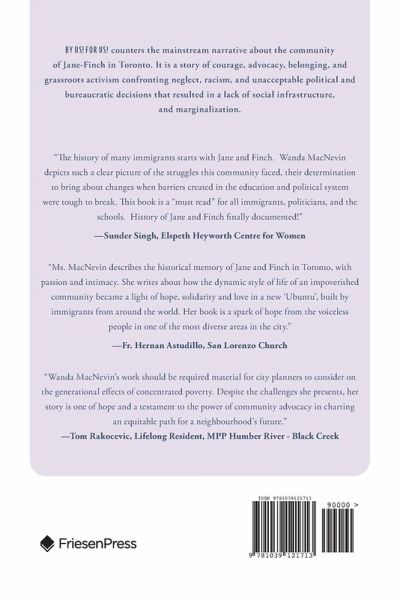 By Us! For Us! counters the mainstream narrative about the community of Jane-Finch in Toronto. It is a story of courage, advocacy, belonging, and grassroots activism confronting neglect and unacceptable political and bureaucratic decisions that resulted in a lack of social infrastructure, racism, and marginalization.