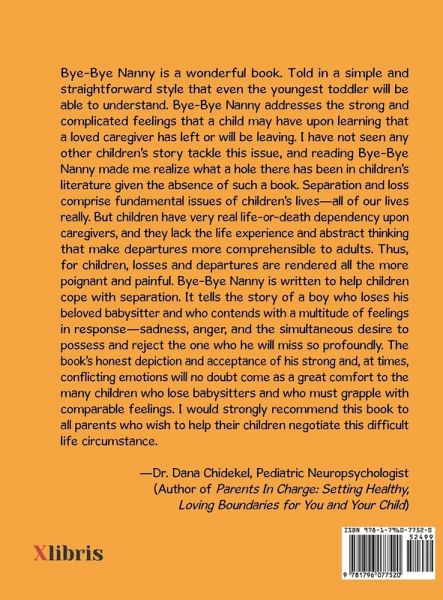 The true story of a young boy's relationship with his beloved Nanny Kitty and how he coped with his distress when she told him she was going away for a year. Bye-bye Nanny will help you realize the strong feelings a child can have for a babysitter or care-giver. Fear of separation can arouse sadness, anger and conflicting emotions. The book includes a letter to parents from the author and a loving salute by Nanny Kitty to the importance of their relationship. Pediatric Neuropsychologist/Author Dr. Dana Chidekel has endorsed the book as "wonderful," strongly recommending it.