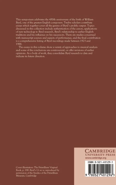 This symposium celebrates the 450th anniversary of the birth of William Byrd, one of the greatest English composers. Twelve scholars contribute essays which together cover all the genres of Byrd's prolific output. Topics discussed in this collection include authentication of the canon, applications of new technology to Byrd research, Byrd's relationship to earlier English traditions and his influence on his successors. There are studies concerned with manuscript sources and aspects of performance, and the final contribution is a comprehensive listing of Byrd recordings made between 1923 and 1988. The essays in this volume show a variety of approaches to musical analysis and some of the conclusions are controversial, or offer revisions of earlier opinions. As a body of work, they consolidate Byrd research to date and indicate its future direction.