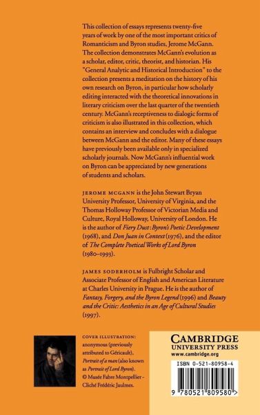 This collection represents twenty-five years of work by Jerome McGann, one of the most important critics of Romanticism and Byron studies. Many of these essays have previously been available only in specialist scholarly journals. Now McGann's influential work on Byron can be appreciated more widely by new generations of students and scholars.