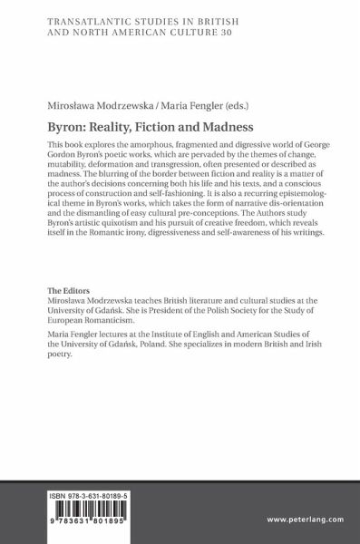 This book explores the amorphous, fragmented and digressive world of George Gordon Byron's poetic works, which are pervaded by the themes of change, mutability, deformation and transgression, often presented or described as madness. The blurring of the border between fiction and reality is a matter of the author's decisions concerning both his life and his texts, and a conscious process of construction and self-fashioning. It is also a recurring epistemological theme in Byron's works, which make take the form of narrative dis-orientation and the dismantling of easy cultural pre-conceptions. The Authors study Byron's artistic quixotism and his pursuit of creative freedom which reveals itself in the Romantic irony, digressiveness and self-awareness of his writings.