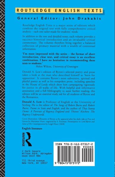 Donald Low's collection contains Byron's most subversive, spirited and playful poetry as well as his outspoken prose. With helpful and informative annotation and a full bibliography this is an essential study aid for students.