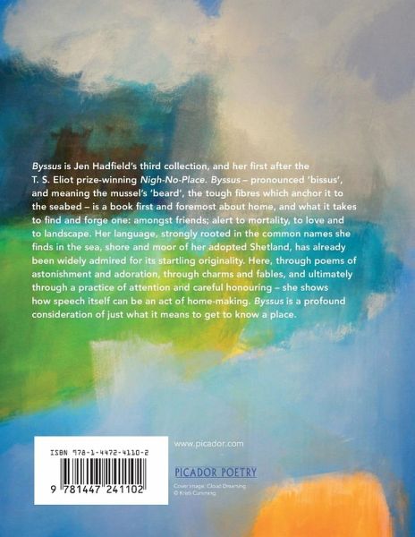 Jen Hadfield lives in Shetland. Her first collection Almanacs won an Eric Gregory Award in 2003. Her second collection Nigh-No-Place won the T. S. Eliot Prize and was shortlisted for the Forward Prize for Best Collection. She won the Edwin Morgan Poetry Competition in 2012. Her collection The Stone Age won the Highland Book Prize in 2022.