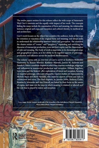 Contents: Preface; Introduction: the collegial life of Annemarie Weyl Carr, Bonnie Wheeler. Part I Manuscripts: Workshops, Subgroups and Influences: The afterlife of texts: decorative style manuscripts and New Testament textual criticism, Kathleen Maxwell; Flexibility and fusion in Eastern Mediterranean manuscript production: Oxford, Bodleian, Laud. Gr. 86, Justine M. Andrews; The little Jewish boy: afterlife of a Byzantine legend in 13th-century Spain, Pamela A. Patton. Part II Intent and Reception: The stamp of power: the life and afterlife of Pulcheria's Buildings, Diliana Angelova; Perceptions of Byzantium: Radegund of Poitiers and relics of the True Cross, Lynn Jones; Afterlife of the Rhodes Hand of St John the Baptist, Ida Sinkevi. Part III Cypriot Influences: Some remarks on the appropriation, use, and survival of Gothic forms on Cyprus, Michele Bacci; Byzantine icon-painting around 1400: Constantinople or Crete?, Maria Vassilaki. Part IV The Nature of Copies: The use of çintamani as ornament: a case study in the afterlife of forms, Jaroslav Folda; Twice is not enough: the biography of a 'Byzantine' Crucifixion ivory, Anthony Cutler; The salvation of the soul and the road to Heaven: the representation of the Ladder of Divine Ascent in the Vatopedi Katholikon, Rossitza B. Schroeder; Death and life: the persistence of sacred imagery from the Croce Dipinta of Albert Sotio, Ann Driscoll. Publications of Annemarie Weyl Carr; Index.