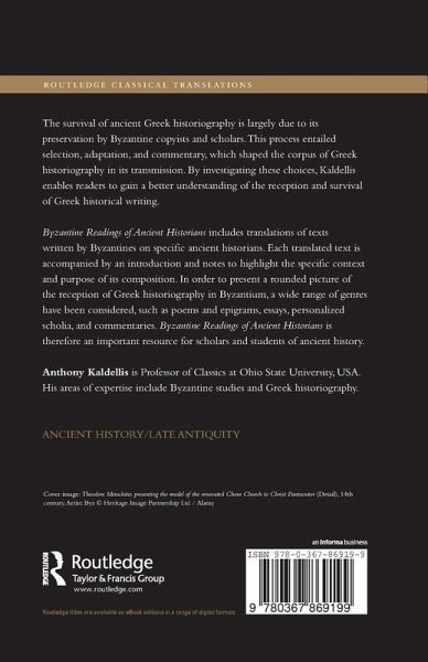 The survival of ancient Greek historiography is largely due to its preservation by Byzantine copyists and scholars. This process entailed selection, adaptation, and commentary, which shaped the corpus of Greek historiography in its transmission. By investigating those choices, Kaldellis enables a better understanding of the reception and survival of Greek historical writing.