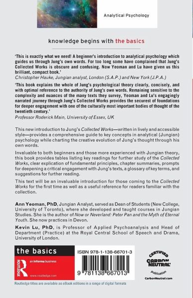 'The Collected Works of C. G. Jung: The Basics by Drs. Lu and Yeoman offers a clear, concise, and well synthesized presentation of the whole of Jung's collected works. Responsive to the expanding body of scholarship of the past 25 years in Jungian studies, the authors provide a remarkable, interwoven tapestry revealing the trajectory of the threads of Jung's key concepts. Tables provided throughout the book generate a wonderful map of this tapestry and will be of great use to students and researchers.'