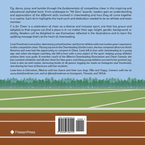 Lexie Freedman is an author, elementary school teacher, and former athlete with over twelve years' experience in elite competitive cheer. Placing top ten in the Cheerleading Worlds twice, she has competed all across North America and even had the opportunity to compete in China. Lexie fell in love with cheerleading at a young age, and when she began coaching, she fell in love with a new aspect of the sport: helping young athletes achieve their own goals. A member coach of the Alberta Cheerleading Association and Cheer Canada, she has coached scholastic and all-star cheer for nine years; watching young athletes succeed is her greatest joy. Lexie is also an avid reader, devouring books of all genres, logging her reads on Instagram and Goodreads, and sharing her love of literature with her students. Lexie lives in Edmonton, Alberta with her fiancé and their two dogs, Ollie and Poppy. Connect with her at www.lexiefreedman.com, and at @lexiefreedman on Instagram, Threads, and TikTok.