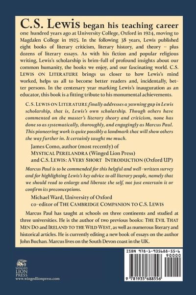 C. S. Lewis began his teaching career one hundred years ago at University College, Oxford in 1924, moving to Magdalen College in 1925. In the following 38 years, Lewis published eight books of literary criticism, literary history, and theory - plus dozens of literary essays. As with his fiction and popular religious writing, Lewis's scholarship is brim-full of profound insights about our common humanity, the books we enjoy, and our fascinating world. C.S. Lewis on Literature brings us closer to how Lewis's mind worked, helps us all to become better readers and, incidentally, better persons. In the centenary year marking Lewis's inauguration as an educator, this book is a fitting tribute to his monumental achievements.