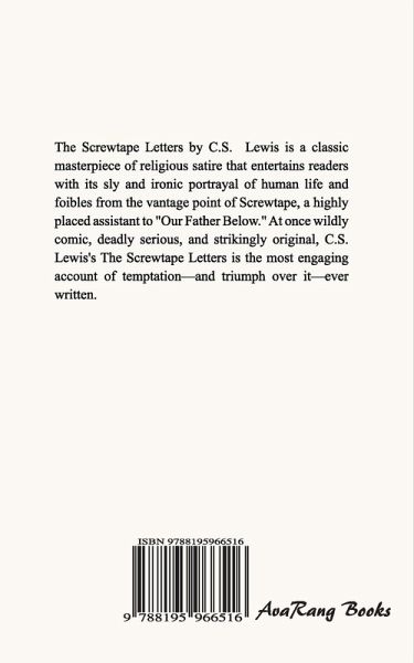 The Screwtape Letters by C.S. Lewis is a classic masterpiece of religious satire that entertains readers with its sly and ironic portrayal of human life and foibles from the vantage point of Screwtape, a highly placed assistant to "Our Father Below." At once wildly comic, deadly serious, and strikingly original, C.S. Lewis's The Screwtape Letters is the most engaging account of temptation-and triumph over it-ever written.