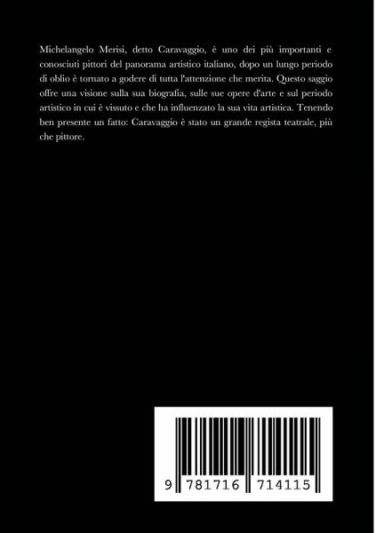 Michelangelo Merisi, detto Caravaggio, è uno dei più importanti e conosciuti pittori del panorama artistico italiano, dopo un lungo periodo di oblio è tornato a godere di tutta l'attenzione che merita. Questo saggio offre una visione sulla sua biografia, sulle sue opere d'arte e sul periodo artistico in cui è vissuto e che ha influenzato la sua vita artistica. Tenendo ben presente un fatto: Caravaggio è stato un grande regista teatrale, più che pittore.