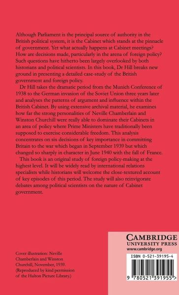 Although Parliament is the principal source of authority in the British political system, it is the Cabinet which stands at the pinnacle of government. Yet what actually happens at Cabinet meetings? How are decisions made, particularly in the arena of foreign policy? Such questions have hitherto been largely overlooked by both historians and political scientists. In this book, Dr Christopher Hill presents a detailed case-study of the British government and foreign policy, during the dramatic period from the Munich Conference of 1938 to the German invasion of the Soviet Union three years later. Using extensive archival material, he examines how far the strong personalities of Neville Chamberlain and Winston Churchill respectively were really able to dominate their Cabinets in an area of policy where Prime Ministers have traditionally been supposed to exercise considerable freedom. This analysis concentrates on six decisions that were of key importance in committing Britain to the war which began in September 1939 but which changed so sharply in character in June 1940 with the fall of France. An original study of foreign policymaking at the highest level, this book will be widely read by international relations specialists while historians will welcome the close-textured account of key episodes of this period. It will also reinvigorate debates among political scientists on the nature of Cabinet government.