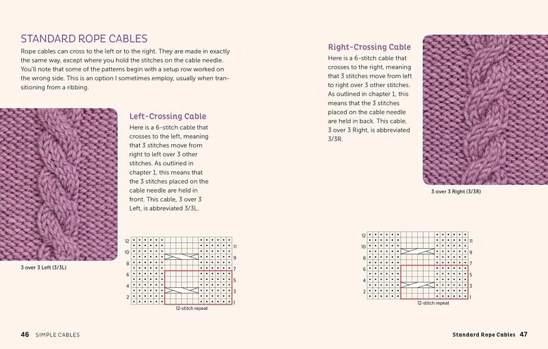 A popular design element in many of today's garments and home dec items, as well as an iconic part of many different knitting traditions, cables add drama and texture to knitted fabric. Cable Left, Cable Right takes the mystery out of how to create and design them, for all levels of knitting skill.