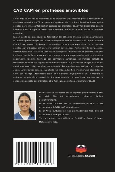 Après près de 80 ans de méthodes et de protocoles peu modifiés pour la fabrication de prothèses complètes (CD), les premiers systèmes de prothèses dentaires à conception assistée par ordinateur/fabrication assistée par ordinateur (CAO/FAO) disponibles dans le commerce ont marqué le début d'une nouvelle ère dans le domaine de la prothèse amovible.La complexité des procédures de fabrication des CD est la principale raison pour laquelle la technologie numérique n'est devenue disponible que récemment pour la prosthodontie des CD par rapport à d'autres restaurations prosthodontiques fixes. La technologie assistée par ordinateur est un terme général qui implique l'utilisation de compétences informatiques pour faciliter la conception, l'analyse et la fabrication de produits. Elle peut impliquer soit la fabrication additive (comme le prototypage rapide), soit la fabrication soustractive (comme l'usinage par commande numérique informatisée [CNC]). La fabrication additive, ou impression tridimensionnelle (3D), utilise les images d'un fichier numérique pour créer un objet en déposant des couches successives d'un matériau choisi. La fabrication soustractive utilise les images d'un fichier numérique pour créer un objet par usinage (découpe/fraisage) afin d'enlever physiquement de la matière et d'obtenir la géométrie souhaitée. En prosthodontie, la procédure soustractive, la conception assistée par ordinateur et la fabrication assistée par ordinateur (CAO).