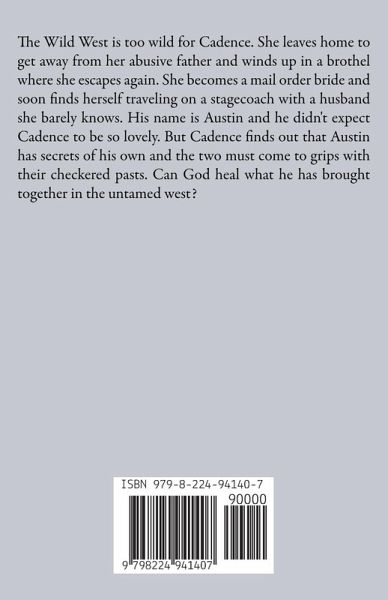 The Wild West is too wild for Cadence. She leaves home to get away from her abusive father and winds up in a brothel where she escapes again. She becomes a mail order bride and soon finds herself traveling on a stagecoach with a husband she barely knows. His name is Austin and he didn't expect Cadence to be so lovely. But Cadence finds out that Austin has secrets of his own and the two must come to grips with their checkered pasts. Can God heal what he has brought together in the untamed west?
