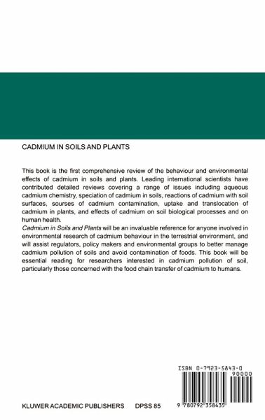 1. Cadmium in Soils and Plant.- 1. Introduction.- 2. Accumulation of cadmium in soils and plants.- 3. World fertiliser supply - cadmium issues.- 4. Re-use of waste materials - cadmium issues.- 2. The Environmental Chemistry of Cadmium.- 1. Basic chemical properties.- 2. Aqueous complexation.- 3. Abundance and form in natural environments.- 4. Cadmium concentrations in soils.- 5. Analytical approaches for cadmium speciation in the environment.- 6. Conclusions.- 3. Chemistry of Cadmium in Soil Solution.- 1. Introduction.- 2. Properties of cadmium.- 3. Cadmium in soil solution.- 4. Measured and calculated speciation of cadmium in soil solutions.- 5. Phenomena controlling the concentration of cadmium and zinc in soil solutions.- 6. Conclusions.- 4. Solid Phase Cadmium and the Reactions of Aqueous Cadmium with Soil Surface.- 1. Introduction.- 2. Solid phases.- 3. Adsorption-desorption processes.- 4. Conclusions.- 5. Anthropogenic Additions of Cadmium to Soils.- 1. Introduction.- 2. Cadmium concentrations in soils.- 3. Anthropogenic sources of cadmium.- 4. Conclusions.- 6. Mechanisms of Cadmium Uptake, Translocation and Deposition in Plants.- 1. Introduction.- 2. Availability of cadmium in soil.- 3. Uptake of cadmium by roots.- 4. Transport and deposition.- 5. Bioavailability of cadmium in plant foods.- 6. Conclusions.- 7. Management Factors which Influence Cadmium Concentrations in Crops.- 1. Introduction.- 2. Site selection.- 3. Crop selection and cultivar development.- 4. Fertiliser management.- 5. Soil pH and liming.- 6. Other soil amendments.- 7. Irrigation water quality.- 8. Phytoremediation.- 9. Other management factors.- 10. Conclusions.- 8. Adverse Effects of Cadmium on Soil Microflora and Fauna.- 1. Introduction.- 2. Data sources.- 3. Effects on microbes andmicrobial processes.- 4. Evidence from field experiments.- 5. Effects on earthworms.- 6. Other invertebrates.- 7. Comparison with Dutch soil quality values.- 8. Conclusions.- 9. Soil Cadmium as a Threat to Human Health.- 1. Introduction.- 2. Diagnosis of human cadmium toxicity.- 3. Interpretation of epidemiological survey data.- 4. Reducing cadmium levels in crops.- 5. Have crop cadmium levels increased over time?.- 6. Common errors in evaluation of plant absorption of soil cadmium.- 7. Livestock food-chains usually exclude cadmium effectively.- 8. High risk crops.- 9. Reducing food chain cadmium risk.- 10. Research on food-chain cadmium risk is still needed.- 11. Does ingested cadmium increase cancer risk?.- 12. Conclusions.- 10. Cadmium in Soils and Plants.- 1. Introduction.- 2. Cadmium in soils.- 3. Cadmium in plants.- 4. Adverse effects of cadmium on biota and human health.- 5. Knowledge gaps and research priorities.