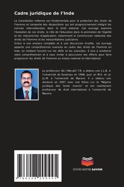 La Constitution indienne est fondamentale pour la protection des droits de l'homme et comporte des dispositions qui ont progressivement intégré les normes internationales dans le droit national. Cet ouvrage examine l'évolution de ces droits, le rôle de l'éducation dans la promotion de l'égalité et les mécanismes d'application, notamment la Commission nationale des droits de l'homme et les interprétations judiciaires.Grâce à une analyse complète et à une discussion érudite, cet ouvrage apporte une compréhension nuancée du cadre des droits de l'homme en Inde, en mettant l'accent sur les défis et les avancées. Il vise à améliorer votre compréhension et à vous inciter à poursuivre vos efforts pour faire progresser les droits de l'homme au niveau national et international.