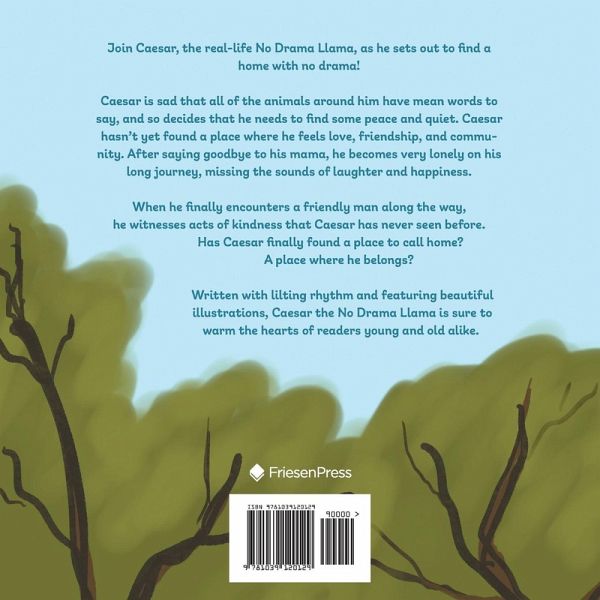 Join Caesar, the real-life No Drama Llama, as he sets out to find a home with no drama! Caesar is sad that all of the animals around him have mean words to say, and so decides that he needs to find some peace and quiet. Caesar hasn't yet found a place where he feels love, friendship, and community. After saying goodbye to his mama, he becomes very lonely on his long journey, missing the sounds of laughter and happiness. When he finally encounters a friendly man along the way, he witnesses acts of kindness that Caesar has never seen before. Has Caesar finally found a place to call home? A place where he belongs? Written with lilting rhythm and featuring beautiful illustrations, Caesar the No Drama Llama is sure to warm the hearts of readers young and old alike.