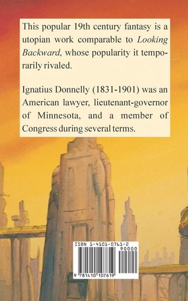 This popular 19th century fantasy is a utopian work comparable to Looking Backward, whose popularity it temporarily rivaled. Ignatius Donnelly (1831-1901) was an American lawyer, lieutenant-governor of Minnesota, and a member of Congress during several terms.