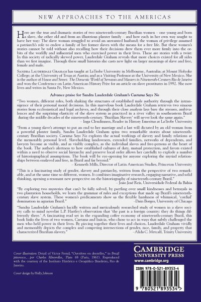 This 2002 book presents the true and dramatic accounts of two nineteenth-century Brazilian women - one young and born a slave, the other old and from an illustrious planter family - and how each sought to retain control of their lives: the slave woman struggling to avoid an unwanted husband; the woman of privilege assuming a patriarch's role to endow a family of her former slaves with the means for a free life. But these women's stories cannot be told without also recalling how their decisions drew them ever more firmly into the orbits of the worldly and influential men who exercised power in their lives. These are stories with a twist: in this society of radically skewed power, Lauderdale Graham reveals that more choices existed for all sides than we first imagine. Through these small histories she casts new light on larger meanings of slave and free, female and male.