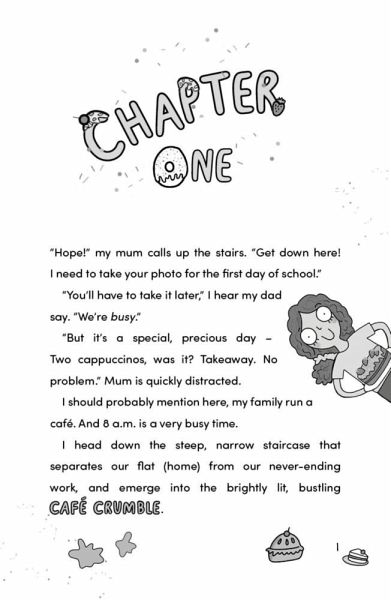 Hope Crumble and her family serve up cakes, coffee and a large helping of calamity in this hilarious new series from much-loved author Catherine Wilkins. Running a bustling café is Hope's family's dream - it's just not hers! Hope has a lot on her plate starting secondary school, but a surprise side dish of outrageous auntie makes things extra spicy in this hilarious new series from much-loved author Catherine Wilkins. While Dad and Gran battle it out in the kitchen, Mum tries to balance the books while serving quiche to hordes of hungry pensioners. Meanwhile Hope's dramatic sister Stacey is determined to turn all of life into a stage and her "wishes-he-was-on-Wall-Street" cousin Connor decides to buy novelty costumes to advertise the business. And then Auntie Rita rocks up. Café Crumble is tipping straight into Café Chaos! Luckily for her family, Hope is there to save the day, though ideally this wouldn't involve dressing up as a giant ice cream and dancing outside the school gates... You'll laugh (a lot), you'll cry (with even more laughter), you'll develop a strange yearning for caroons (whatever they are!). Welcome to Café Chaos!