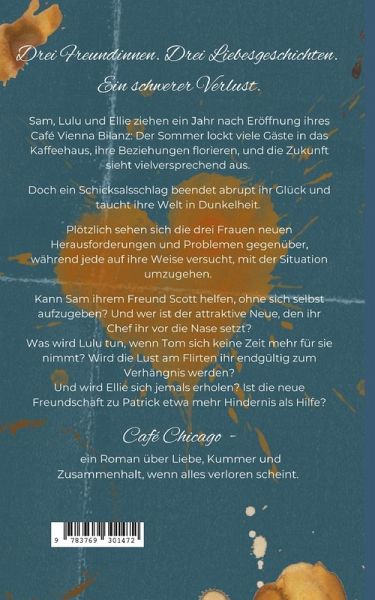 Drei Freundinnen. Drei Liebesgeschichten. Ein schwerer Verlust. Sam, Lulu und Ellie ziehen ein Jahr nach Eröffnung ihres Café Vienna Bilanz: Der Sommer lockt viele Gäste in das Kaffeehaus, ihre Beziehungen florieren, und die Zukunft sieht vielversprechend aus. Doch ein Schicksalsschlag beendet abrupt ihr Glück und taucht ihre Welt in Dunkelheit. Plötzlich sehen sich die drei Frauen neuen Herausforderungen und Problemen gegenüber, während jede auf ihre Weise versucht, mit der Situation umzugehen. Kann Sam ihrem Freund Scott helfen, ohne sich selbst aufzugeben? Und wer ist der attraktive Neue, den ihr Chef ihr vor die Nase setzt? Was wird Lulu tun, wenn Tom sich keine Zeit mehr für sie nimmt? Wird die Lust am Flirten ihr endgültig zum Verhängnis werden? Und wird Ellie sich jemals erholen? Ist die neue Freundschaft zu Patrick etwa mehr Hindernis als Hilfe? Café Chicago - ein Roman über Liebe, Kummer und Zusammenhalt, wenn alles verloren scheint.