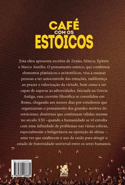 Esta obra apresenta escritos de Zenão, Sêneca, Epítecto e Marco Aurélio. O pensamento estoico, que combina elementos platônicos e aristotélicos, visa a ensinar pessoas a ter autocontrole das emoções, indiferença ao prazer e valorização da virtude, bem como a ser capaz de superar as adversidades. Iniciada na Grécia Antiga, essa corrente filosófica se consolidou em Roma, chegando aos nossos dias por estudiosos que organizaram o pensamento dos grandes mestres do estoicismo, doutrinas que continuam válidas mesmo no século XXI - quando a humanidade se vê envolta com uma infinidade de problemas nas várias esferas, especialmente a beligerância na oposição de ideias -, uma vez que enaltecem o uso da razão para atingir o estado de fraternidade universal entre os seres humanos.