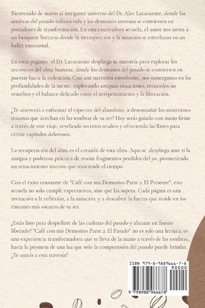 ¡Bienvenido a la cautivadora secuela, "Café con mis Demonios Parte 2: El Pasado"! En esta entrega fascinante, el Dr. Alec Laracuente nos sumerge más profundamente en los recovecos del alma humana, explorando las sombras proyectadas por el pasado. Imagina desentrañar los hilos del tiempo, revelando capítulos olvidados de tu historia personal. En este viaje transformador, los "demonios" se convierten en puertas hacia la oportunidad de sanación y crecimiento profundo. El Dr. Alec, con su destreza narrativa, despliega la antigua práctica de recuperación del alma, prometiendo restaurar fragmentos perdidos del yo. Pero este viaje va más allá de la recuperación. En estas páginas, el Dr. Alec guía a los lectores a través del laberinto del arrepentimiento, desvelando la técnica del contraste mental para iluminar las elecciones pasadas. Este libro te desafía a enfrentar el espectro del abandono, explorando cómo moldea nuestras percepciones y comportamientos en la danza entre el anhelo de conexión y el miedo a la cercanía. La obra se aventura también en los recovecos de los traumas menos conocidos que anidan en lo más profundo de nuestra psique. Desde la crítica hasta la traición, el Dr. Alec examina estas experiencias sutiles pero impactantes, arrojando luz sobre su influencia en nuestros pensamientos, emociones y acciones. Con el éxito resonante de la primera parte, este segundo volumen promete llevar a los lectores a un viaje aún más profundo. Aquí, la sabiduría ganada en el campo de batalla de la vida se teje con las lecciones aprendidas en "Café con mis Demonios Parte 1: El Presente". El resultado es una obra que no solo informa sino que transforma, proporcionando herramientas prácticas y perspectivas reveladoras para el autodescubrimiento y la sanación. Prepárate para embarcarte en una odisea emocional, donde la oscuridad del pasado se encuentra con la luz del entendimiento. "Café con mis Demonios Parte 2: El Pasado" no es solo un libro; es una invitación a enfrentar tus sombras, abrazar tus demonios internos y forjar un futuro más allá de las cadenas de lo que una vez fue.