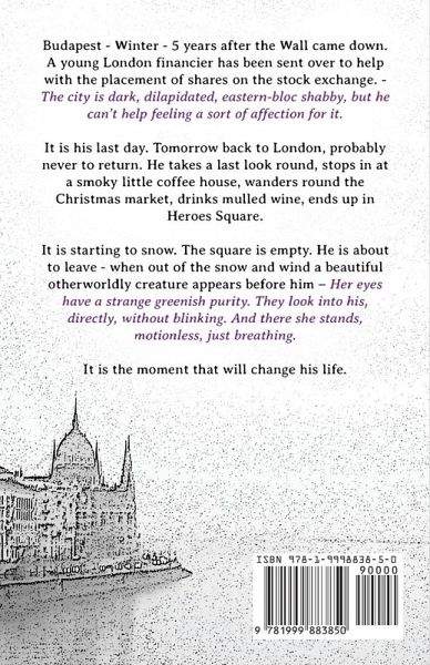 It is five years since the fall of the Berlin Wall. Hungary is painfully and slowly re-emerging from a century of political and social turmoil, of war and occupation, of revolution and bloodshed, of economic disaster and territorial dismemberment. (The Treaty of Trianon, 1920). But now the bright light of capitalism is dawning. A brave new world is at hand. But after five years - apart from a few MacDonald's here and there - Budapest is still a tired, polluted, grimy, dilapidated city, more smoke than light. A young City of London banker has been sent over to advise on the flotation of shares on the Budapest stock exchange. It is only for a week. He is about to return to London, when a chance encounter with a beautiful otherworldly creature leaves him spellbound. They meet again very briefly. Something he perceives in her makes him question all his old money-oriented values. But she won't reveal her name, nor where she lives, just that she teaches in a Steiner school. He goes back to London. But when he is offered a job back in Budapest he takes it - not for the money, but because he wants to try and track her down. This is a journey into the Hungarian soul, into Hungarian life, art, culture, history, sadness, dark side - all seen through the eyes of a beautiful mysterious Hungarian Steiner teacher and a by now ex English banker. It will discover a wonderful and little-known Hungarian painter - Csontvary. It wanders through Transylvania, visits other Hungarian cities - Veszprem, Pecs. It is a finder of lost souls, and a loser of found souls. But which of these could eventually apply to the unlikely couple as they find their way into the soul of the other? If you have never been to Hungary, you might think about it now.