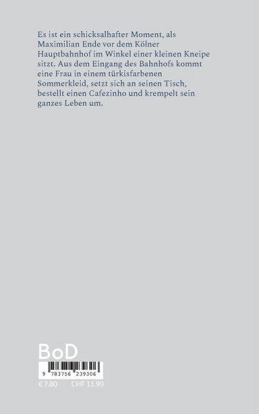 Es ist ein schicksalhafter Moment, als Maximilian Ende vor dem Kölner Hauptbahnhof im Winkel einer kleinen Kneipe sitzt. Aus dem Eingang des Bahnhofs kommt eine Frau in einem türkisfarbenen Sommerkleid, setzt sich an seinen Tisch, bestellt einen Cafezinho und krempelt sein ganzes Leben um.