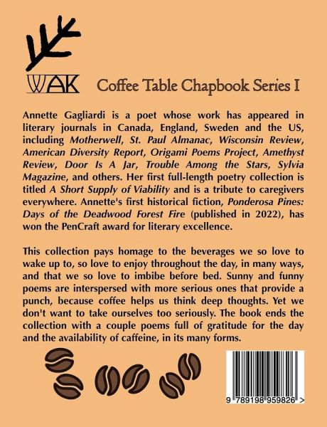 This collection pays homage to the beverages we so love to wake up to, so love to enjoy throughout the day, in many ways, and that we so love to imbibe before bed. Sunny and funny poems are interspersed with more serious ones that provide a punch, because coffee helps us think deep thoughts. Yet we don't want to take ourselves too seriously. The book ends the collection with a couple poems full of gratitude for the day and the availability of caffeine, in its many forms.