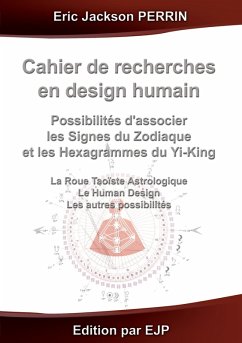Le Design Humain est un système de connaissance de soi qui associe astrologie, Yi-King, Chakras et Arbre de vie Kabbalistique. Ce cahier vous présente les recherches que j'ai effectuées sur les possibilités de combiner les 64 hexagrammes du Yi-King et les 12 signes astrologiques. Des tableaux vous permettent de faire vos propres recherches. 30 cas de figures vous sont proposés répartis selon trois ordres. Parmi ces cas de figure, il y a : -La roue Taôiste réelle qui est non-équidistante -La roue Taôiste « fictive » équidistante. -La roue Taôiste non-équidistante qui démarre à l'Est à l'hexagramme 25 -La roue Taôiste équidistante inversée qui démarre à l'Est à hexagramme 25 -La roue Taôiste non équidistante inversée qui démarre à l'Est à hexagramme 25 -Une Roue hybride Design et Taoïste. -La roue du Design Humain (inversion RT puis décalage de 13° ou mode 13) -Des roues type Design Humain avec des décalages de 19, 20, 21, 22, 23 et 24 degrés -Une Roue selon la symbolique des hexagrammes selon les signes astrologiques -Des roues avec les hexagrammes qui se suivent numériquement et qui démarrent à l'équinoxe du printemps -Des roues avec les hexagrammes qui se suivent numériquement et qui démarrent au solstice d'hivers puis au début du signe du Lion -Les séries d'hexagrammes planétaires et autres recherches