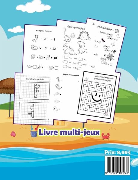 Cahier multi-jeux pour les vacances des enfants de 6 à 8 ans. Ce cahier de vacances propose différents activités pour les enfants à savoir:Mots cachésLabyrinthesDessinsDifférencesSudokusÉnigmesIntrusColoriagesMathsBd à dessinerPoints à relier