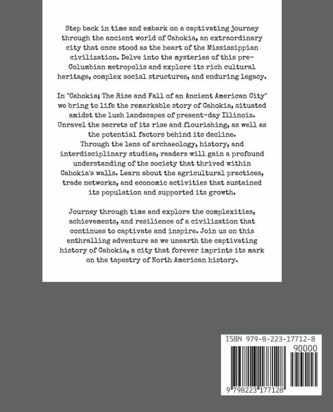 Step back in time and explore the captivating world of Cahokia, an ancient city that once thrived at the heart of the Mississippian civilization. In this meticulously researched and comprehensive book, we journey through the history, culture, and legacy of this enigmatic pre-Columbian metropolis. "Cahokia: The Rise and Fall of an Ancient American City" delves into the remarkable rise and flourishing of Cahokia, situated in the lush landscapes of present-day Illinois. Through the lens of archaeology, history, and interdisciplinary research, readers will gain a profound understanding of this sophisticated urban center. Uncover the mysteries of Cahokia's social organization, where hierarchical structures and political governance shaped the everyday lives of its inhabitants. Discover the significance of trade networks, commerce, and economic activities that contributed to Cahokia's prosperity and regional influence. Immerse yourself in the spiritual beliefs and religious practices of the Cahokian people, as we explore the sacred sites, rituals, and cosmological connections that bound the community together. Learn about the cultural expressions, symbolism, and artistic traditions that reveal the aesthetics and beliefs of this vibrant civilization. Trace the decline of Cahokia and the debates surrounding its enigmatic fall, investigating the potential factors that led to its transformation over time. Follow the enduring legacy of Cahokia on later Native American cultures and modern society, as we contemplate the impact of this ancient metropolis on the broader historical tapestry. This book sheds light on the diverse and vibrant world of Cahokia. Journey through time and explore the complexities, achievements, and resilience of a civilization that remains a testament to the rich cultural heritage of the Americas.
