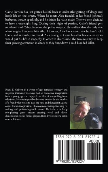 Caine Devilin has just gotten his life back in order after getting off drugs and harsh life on the streets. When he meets Alex Randall at his friend Johnny's barbecue, instant sparks fly, and he thinks he has it made. The two men decided to have a one-night fling. During their night of passion, Caine's friend gets murdered and Caine becomes the prime suspect. He realizes that the only one who can give him an alibi is Alex. However, Alex has a secret, one he hasn't told Caine and is terrified to reveal. Alex can't give Caine his alibi, because to do so would put his life in jeopardy. In order to clear Caine, the two must try to keep their growing attraction in check as they hunt down a cold-blooded killer.